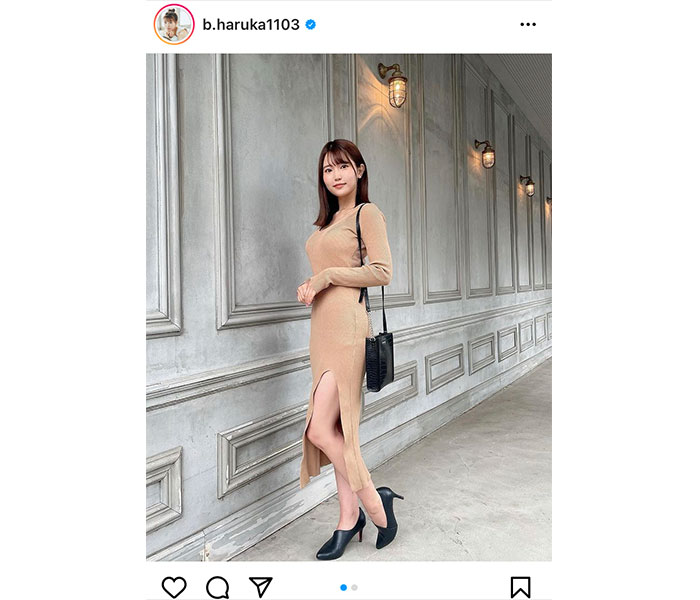 JamsCollection・坂東遥、ニットワンピースから美脚をチラリ!