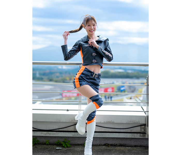 【インタビュー】dela・後藤ひなの、鈴鹿8時間耐久ロードレースで美脚眩しい、爽やかなスカイブルーのRQコスチューム姿を披露!