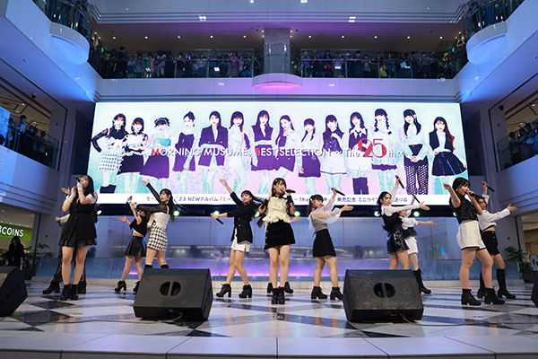 モーニング娘。'23・譜久村聖「この14人の最初で最後のアルバム」とアピール!17期メンバー・井上春華&弓桁朱琴、池袋サンシャインシティ噴水広場でフレッシュな初パフォーマンス。