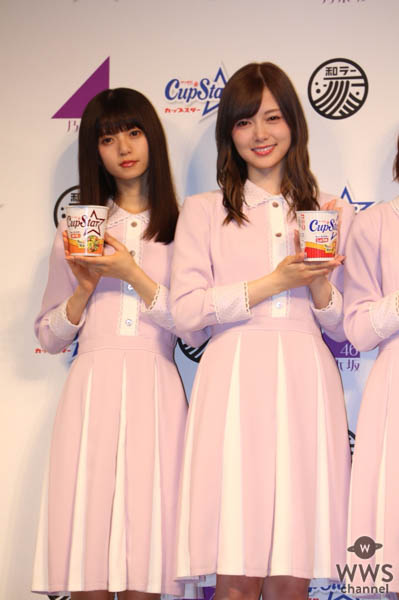 乃木坂46 齋藤飛鳥、白石麻衣、西野七瀬、松村沙友理が「カップスター・和ラー 日本中を、もりあげろ!キャンペーン」発表会に登場! 「さっぱり味がおススメ」