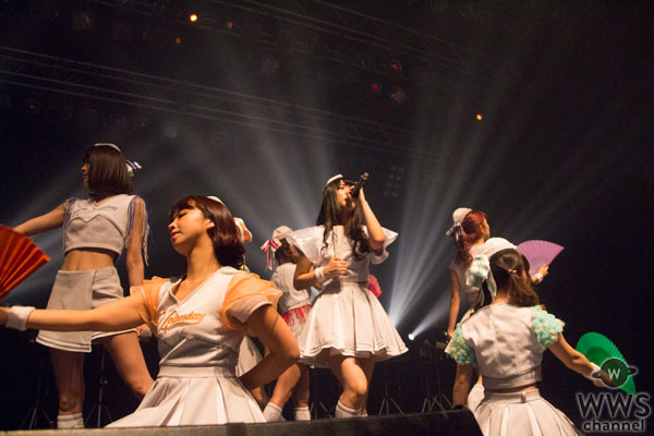 大きな歓声に迎えられ登場すると、1曲目には振り付けに扇子を取り入れた楽曲『夏空HANABI』を披露。
