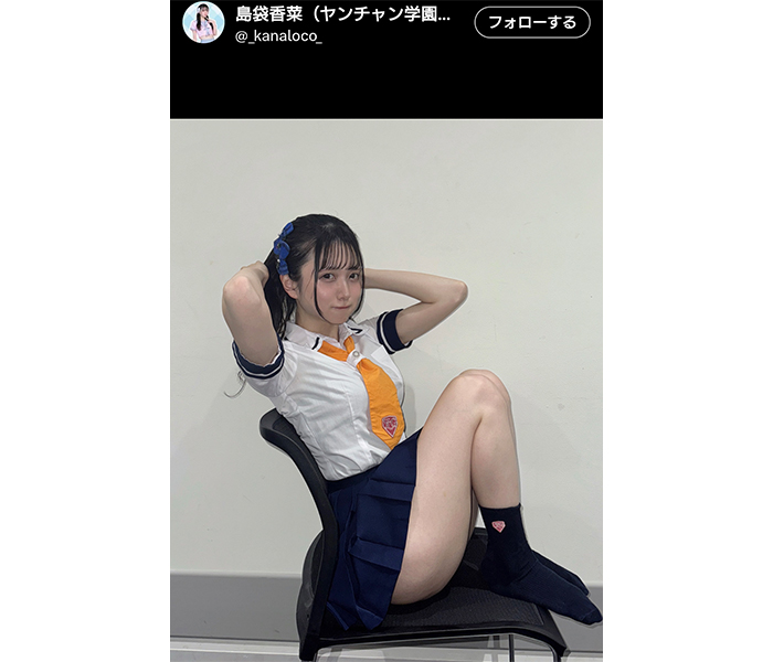 ヤンチャン学園音楽部・島袋香菜、脚線美かがやう制服ショットを公開!