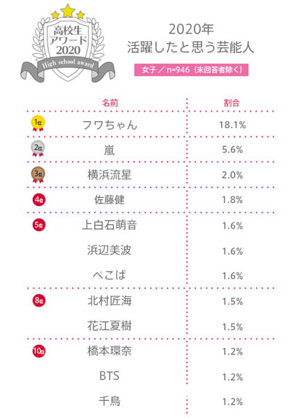 【高校生アワード2020】2020年活躍したと思う芸能人とは? 画像 1/3