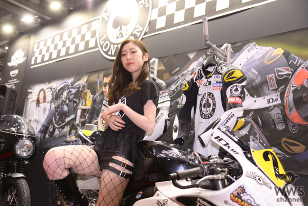 榎本セナ、黒網タイツ越しの美脚に来場者釘付け!<東京モーターサイクルショー2022>