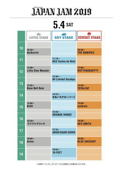 JAPAN JAM 2019・タイムテーブル 5/4 画像 2/4