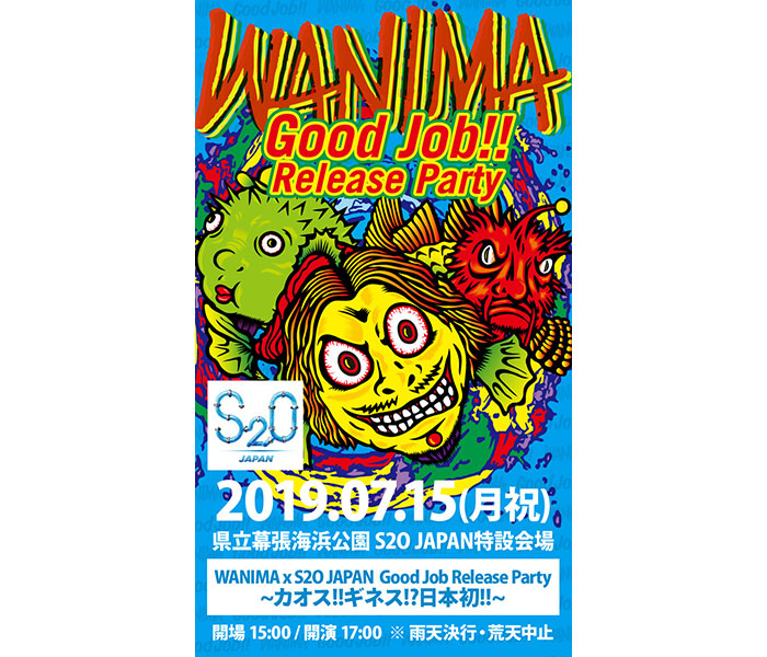 WANIMAが3月6日(水)発売の4thシングル「Good Job!!」の発売を記念してワンマンライブ形式で全国3箇所の野外ステージにて開催する『WANIMA Good Job!! Release Party』!!7月15日(月・祝)の開催日と首都圏での開催のみが発表さ ...