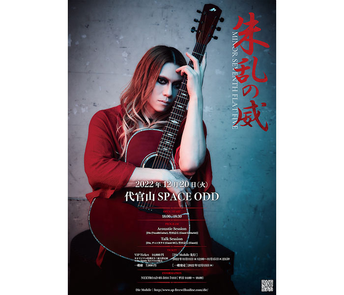 DIR EN GREYのGuitar・Dieが、自身の誕生日である2022年12月20日(火)に代官山SPACE ODDにてソロイベント『朱乱の威 -MINOR SEVENTH FLAT FIVE-』を開催することを発表した。2019年12月にバースデーイベントとして『 ...
