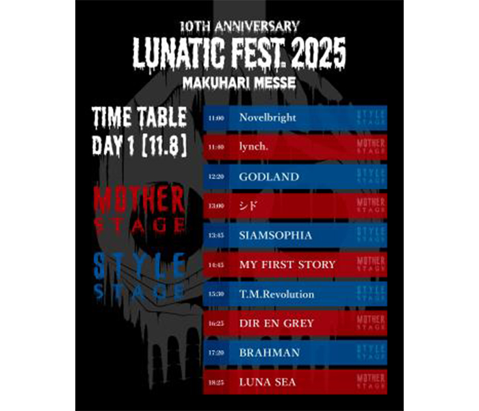 LUNA SEA主催のロックフェス「LUNATIC FEST. 2025」タイ...