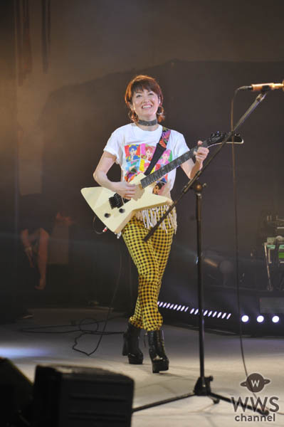 フリンジをあしらったエレガントなワンピースに衣装替えした後半は「コーヒー・ルンバ」などのヒット曲に加え、米国の歌手、カミラ・カベロの「Havana」(全米1位獲得曲)のカバーも披露。「ダンシング・ヒーロー」歌唱時は、“しもしも電話”を使って、同曲を出囃子に使用している平野ノラとの架空トークを展開し、会場を大いに沸かせました。時にダンサーを従え、華麗なダンスパフォーマンスを見せた荻野目は、エレキギターやウクレレも演奏して、マルチエンターテイナーぶりを発揮。アンコールではライブの定番曲「夏のステージ・ライト」をファンと合唱するなど、34年のキャリアにふさわしい圧巻のステージで満場の観客を魅了した。