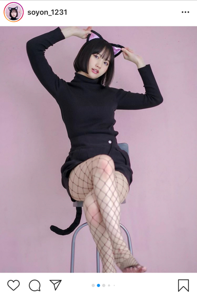 そよん、魅惑的な網タイツの黒猫コスプレ!「ため息が出るほど可愛い」