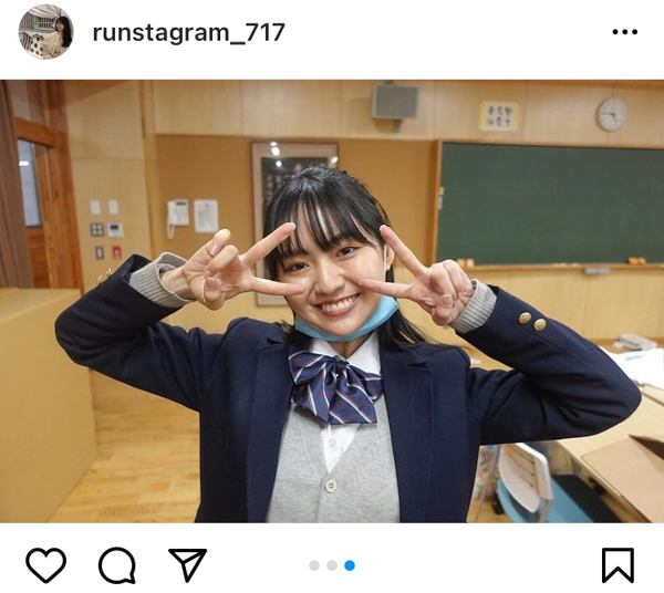 豊田ルナ、制服姿で“咄嗟”のダブルピースに反響ぞくぞく!