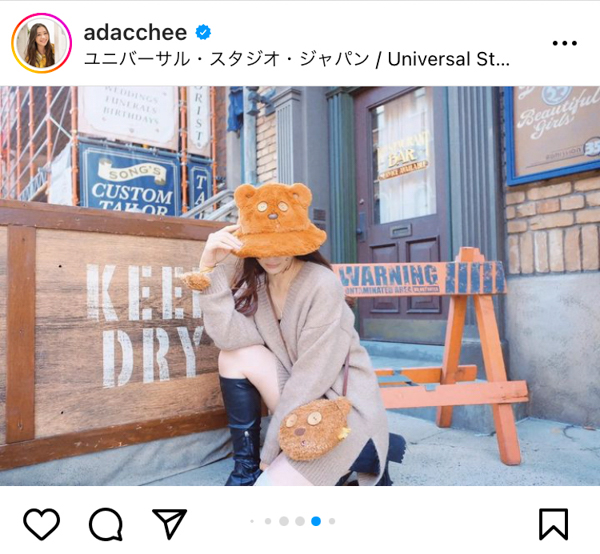 足立は投稿で「WARNING」とコメントを寄せるとともに、コスプレをしてユニバーサル・スタジオ・ジャパンを訪れた際の写真を公開した。