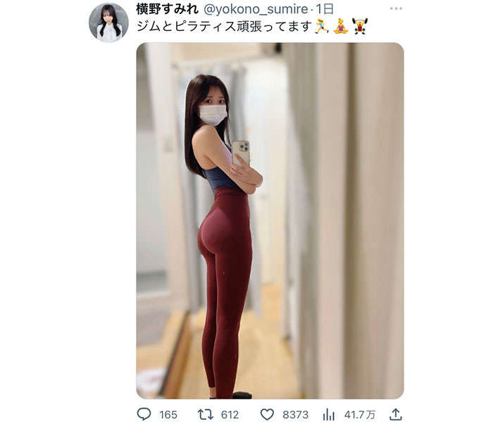 横野すみれ、ぷりっとした桃尻がセクシーなトレーニングウェア姿を公開