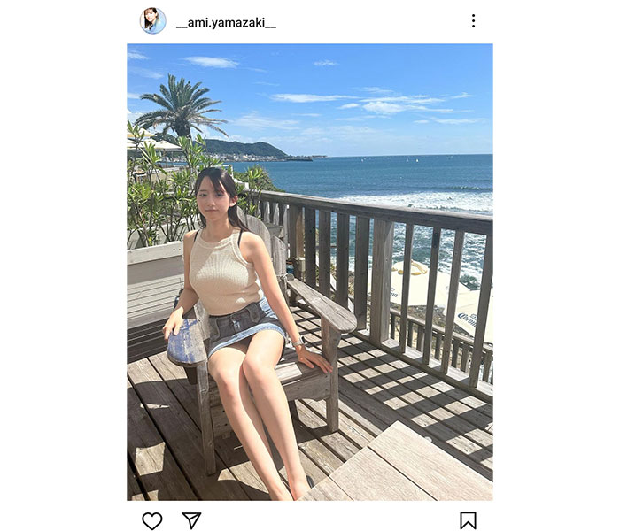 山崎あみ、シンプル夏コーデで生脚を披露!「見えそうで見えない」パンチラショット公開!